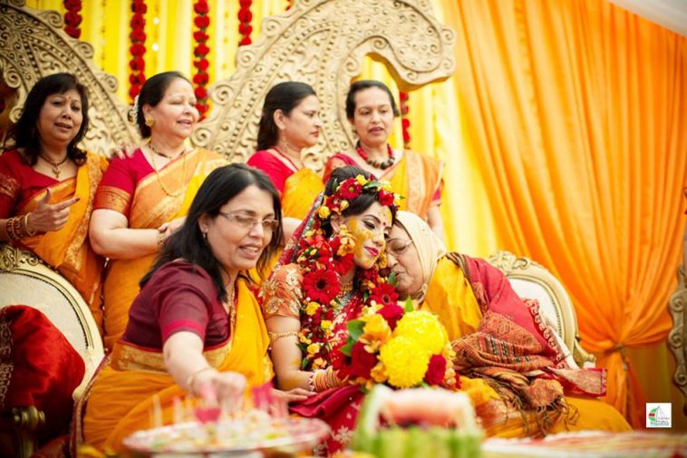 #2 গায়ে হলুদে কনের লাল রঙের শাড়ি
