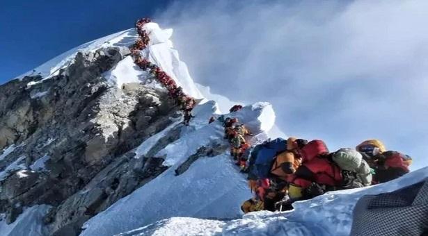 সম্প্রতি সামাজিক মাধ্যমে ভাইরাল হওয়া মাউন্ট এভারেস্টে একটি ছবিতে এমন চিত্র দেখা গেছে। ছবিটি ২০১৯ সালের মে মাসে নির্মল পূর্জা নামে এক নেপালি পোস্ট করেছিলেন সোশ্যাল মিডিয়ায় । এরপর তা ভাইরাল হলে নেপাল সরকার তীব্র সমালোচনার মুখে পড়ে ।