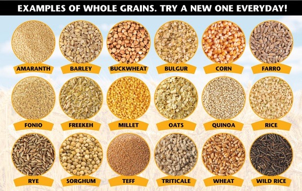 সমগ্র শস্য যা ব্লাড সুগার কমিয়ে ডায়াবেটিস পরিচালনা করার জন্য সেরাবার্লিবাদামী ভাতবাজরাবুলগুর (ফাটানো গম)বাজরাজইচূর্ণভুট্টার খইপুরো গমের রুটি, পাস্তা বা ক্র্যাকার